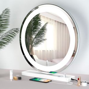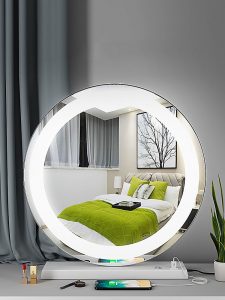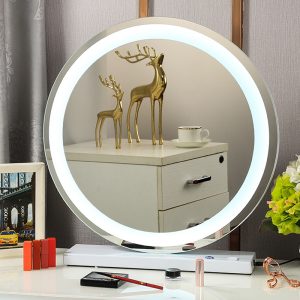 Hollywood style simple modern desktop LED lighted round makeup mirror
