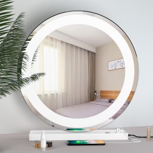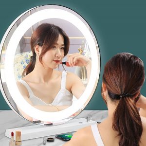 Hollywood style simple modern desktop LED lighted round makeup mirror