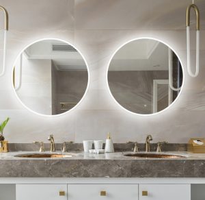 The bathroom environment is full of water vapor, especially in winter, the temperature difference is large, and the mist is all over the mirror surface after the shower. For women who love beauty, you can choose an anti-fog mirror (the power switch of the anti-fog film is best to be connected in parallel with the mirror light)