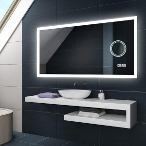 Digital Clock Cool White Color Finely crafted mirror offering a bright crystal-clear reflection Mirror with Silvered Reflection Layer Wires Directly to Wall LED Lighted Vanity Bathroom Mirror ROHS Compliant, Safe, Environmental and Waterproof Wall Hanging Horizontal Or Vertical Mounting Hardware Included LED lifetime approx 50,000 hours |