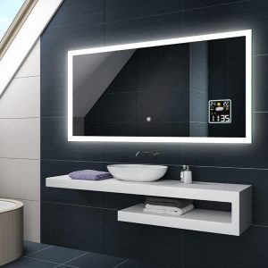 Digital Clock Cool White Color Finely crafted mirror offering a bright crystal-clear reflection Mirror with Silvered Reflection Layer Wires Directly to Wall LED Lighted Vanity Bathroom Mirror ROHS Compliant, Safe, Environmental and Waterproof Wall Hanging Horizontal Or Vertical Mounting Hardware Included LED lifetime approx 50,000 hours |