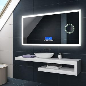 Digital Clock Cool White Color Finely crafted mirror offering a bright crystal-clear reflection Mirror with Silvered Reflection Layer Wires Directly to Wall LED Lighted Vanity Bathroom Mirror ROHS Compliant, Safe, Environmental and Waterproof Wall Hanging Horizontal Or Vertical Mounting Hardware Included LED lifetime approx 50,000 hours |