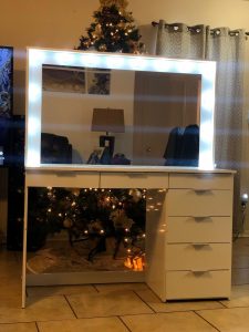 white color with drawers and mirror dressing table 7 drawer makeup vanity table with lighted mirror Hollywood Vanity Station