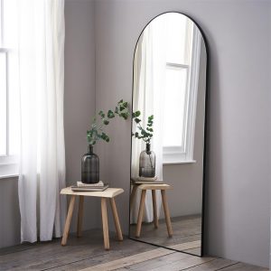 SWT wholesales modern black arched metal framed large full length dressing mirror for home and Hotel